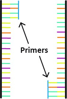 Once the primer is attached, heat is applied and the PCR enzyme Taq-Polymerase begins to extend and replicate the strand. Taq-polymerase acts as the assembly worker, grabbing the required base pair and adding it to the primer until a replicated strand is complete.